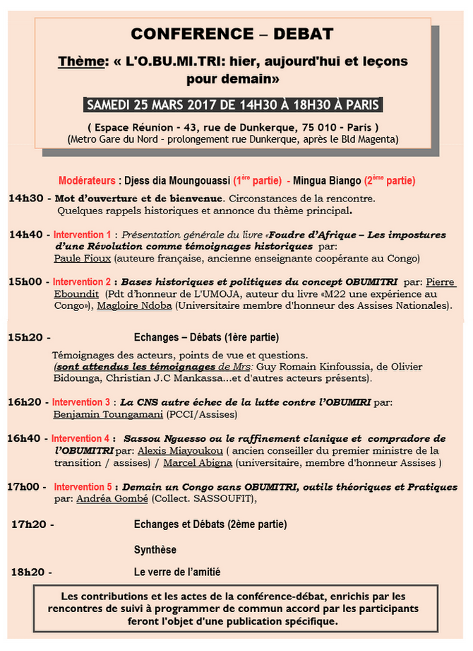 CONFÉRENCE – DÉBAT : Thème : « L’O.BU.MI.TRI: hier, aujourd’hui et leçons pour demain»