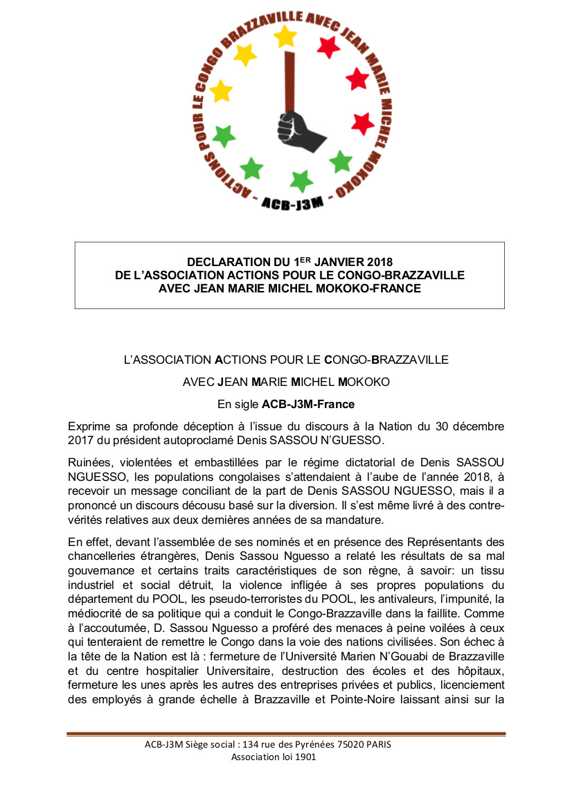Déclaration de l’ACB-J3M suite au discours de l’état de la Nation du tyran Sassou-NGuesso