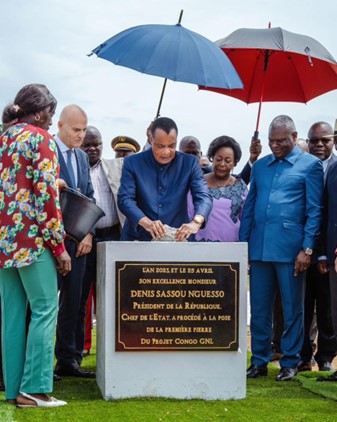 Finalement, le 25 avril 2023, quatre années après la présentation du projet gazier par Perenco, ENI annonçait officiellement : « Le président de la République du Congo, Denis Sassou Nguesso, et le directeur général d’Eni, Claudio Descalzi, ont posé aujourd’hui la première pierre de Congo LNG, le premier projet de liquéfaction de gaz naturel et l’une des principales initiatives de diversification de l’approvisionnement d’Eni. Le projet devrait atteindre une capacité globale de production de gaz naturel liquéfié (GNL) de 3 millions de tonnes par an (environ 4,5 milliards de mètres cubes/an) à partir de 2025… » (https://www.eni.com/en-IT/media/press-release/2023/04/eni-inaugurates-congo-lng-project-in-the-republic-of-the-congo.html).