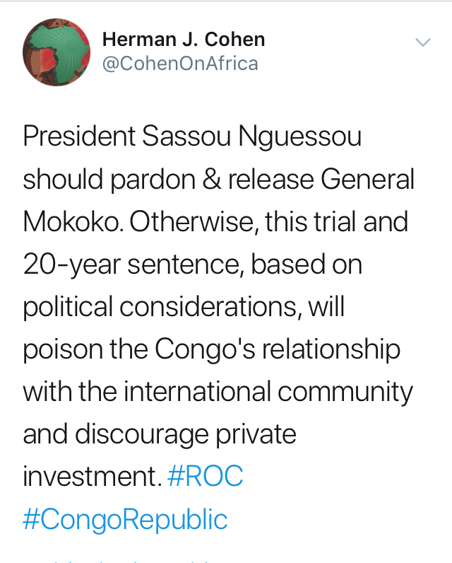 Herman Cohen, ancien sous-secrétaire d’Etat aux Affaires africaines demande la libération du Général Mokoko.