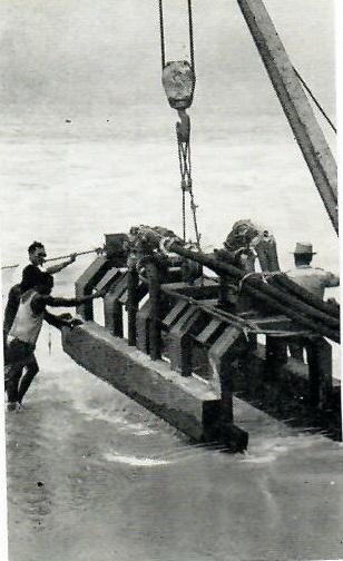 Mise place du traîneau spécial de lancement et ensouillage de la conduite du sea-line au droit de la barre