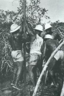 Les premiers forages réalisés les mains nues par la main d’œuvre locale africaine.