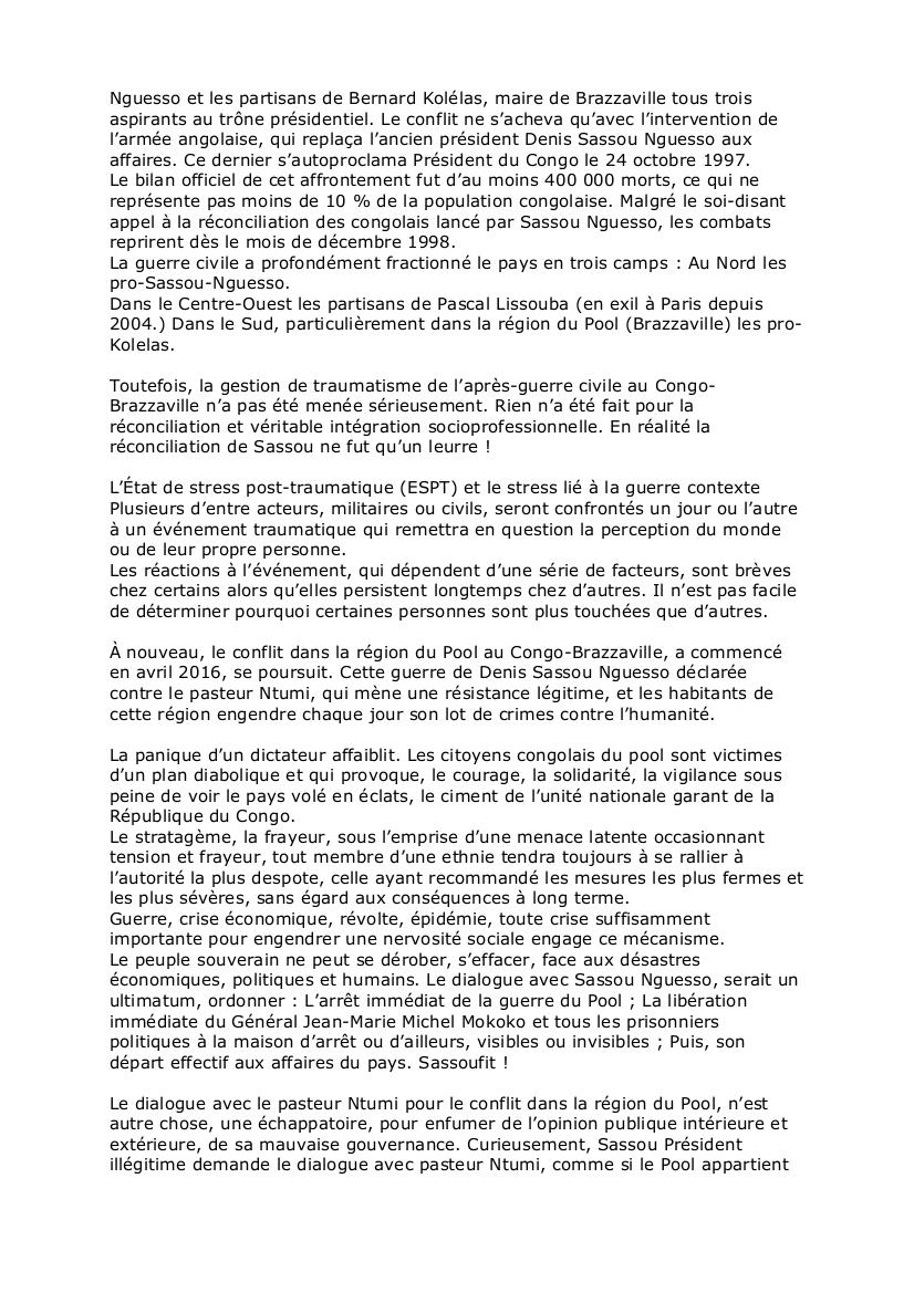 LE PEUPLE SOUVERAIN DOIT ÉCARTER SASSOU NGUESSO À LA TÊTE DU CONGO-BRAZZAVILLE. Par Antoine OYABI.