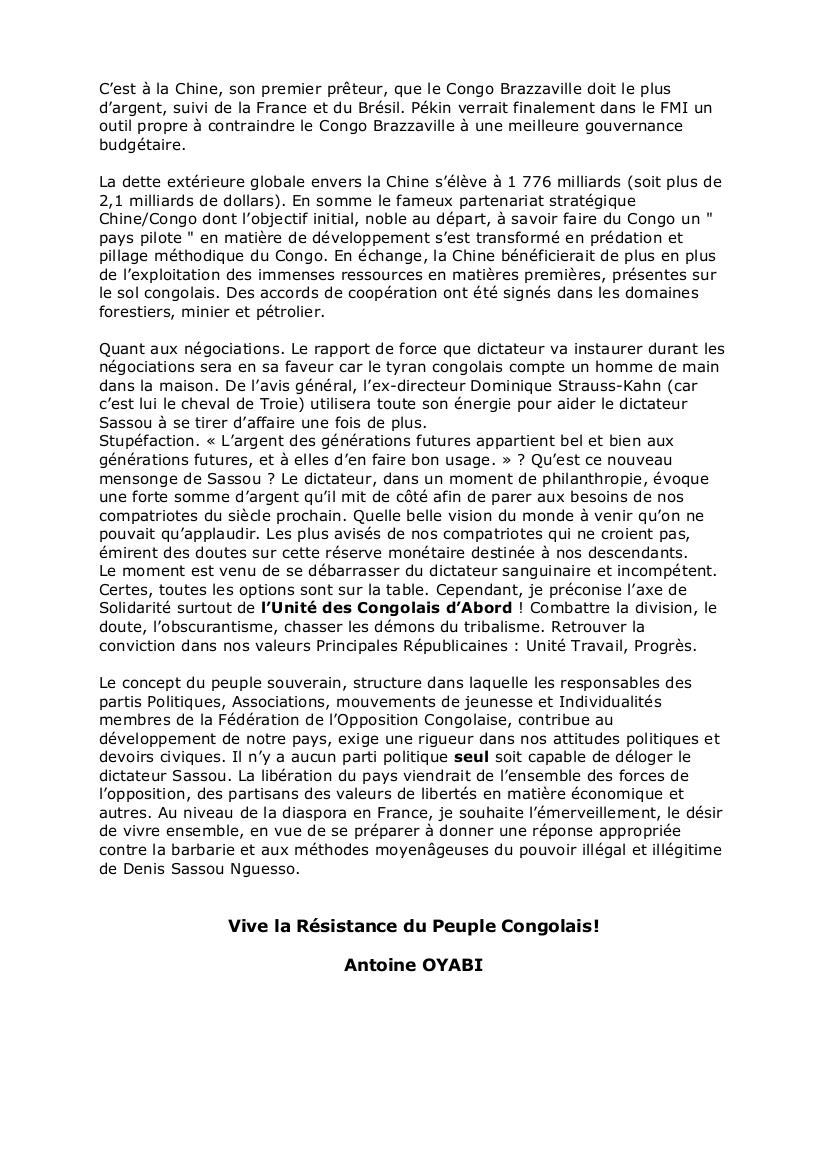 ← LE PEUPLE SOUVERAIN DOIT ÉCARTER SASSOU NGUESSO À LA TÊTE DU CONGO-BRAZZAVILLE. Par Antoine OYABI.