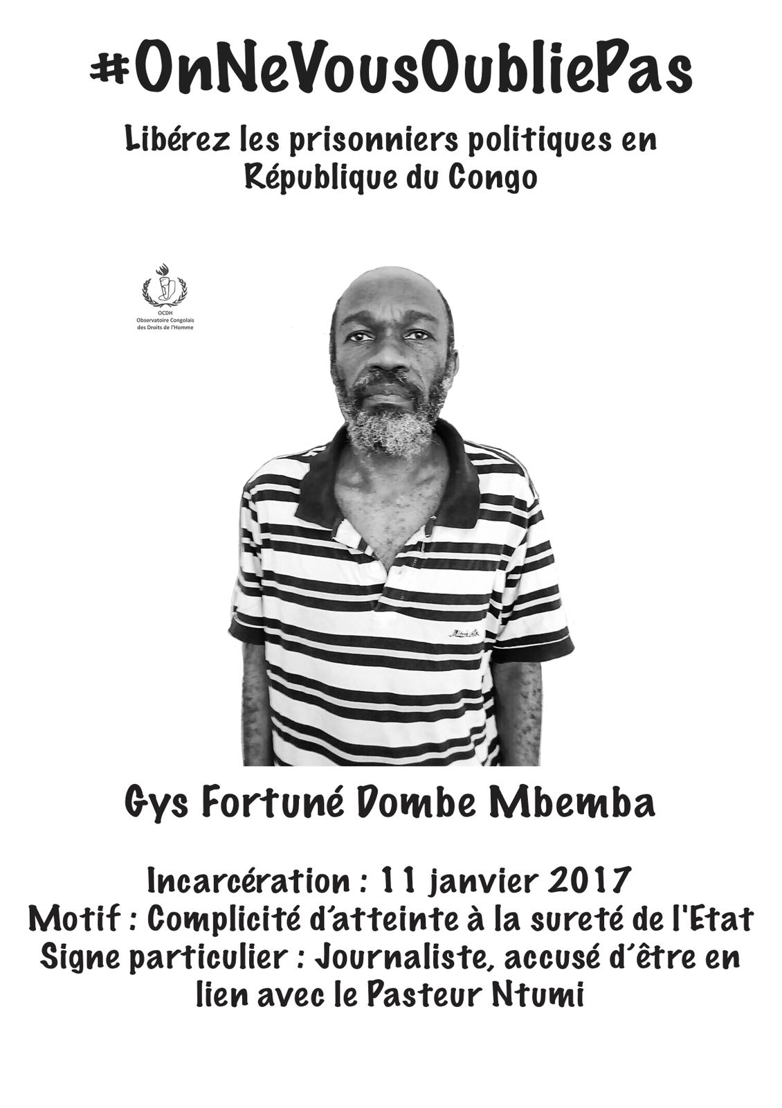 #OnNeVousOubliePas » continue avec Ghys Fortuné Dombé Mbemba,