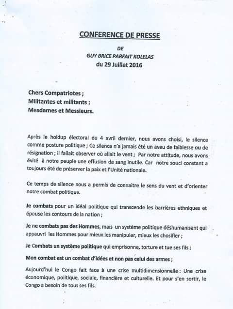 ← PARFAIT KOLELAS APPELLE A UN DIALOGUE AVEC LE DICTATEUR SASSOU ALIAS 8%