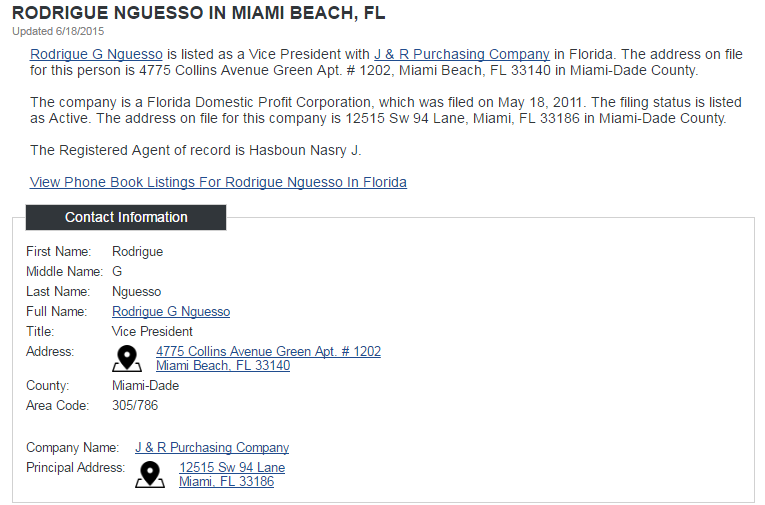 RODRIGUE NGUESSO ET SES BIENS MAL ACQUIS DE MIAMI-BEACH EN FLORIDE (USA). Par Rigobert OSSEBI