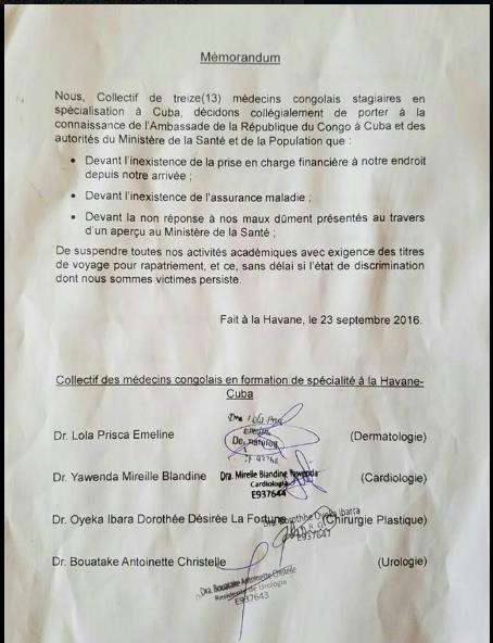 SOS DES MÉDECINS-STAGIAIRES CONGOLAIS A CUBA